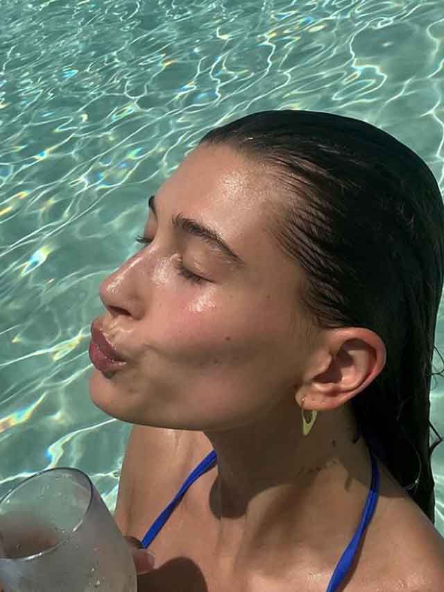 Hailey Bieber seemed gorgeous while she wore a vibrant blue string bikini